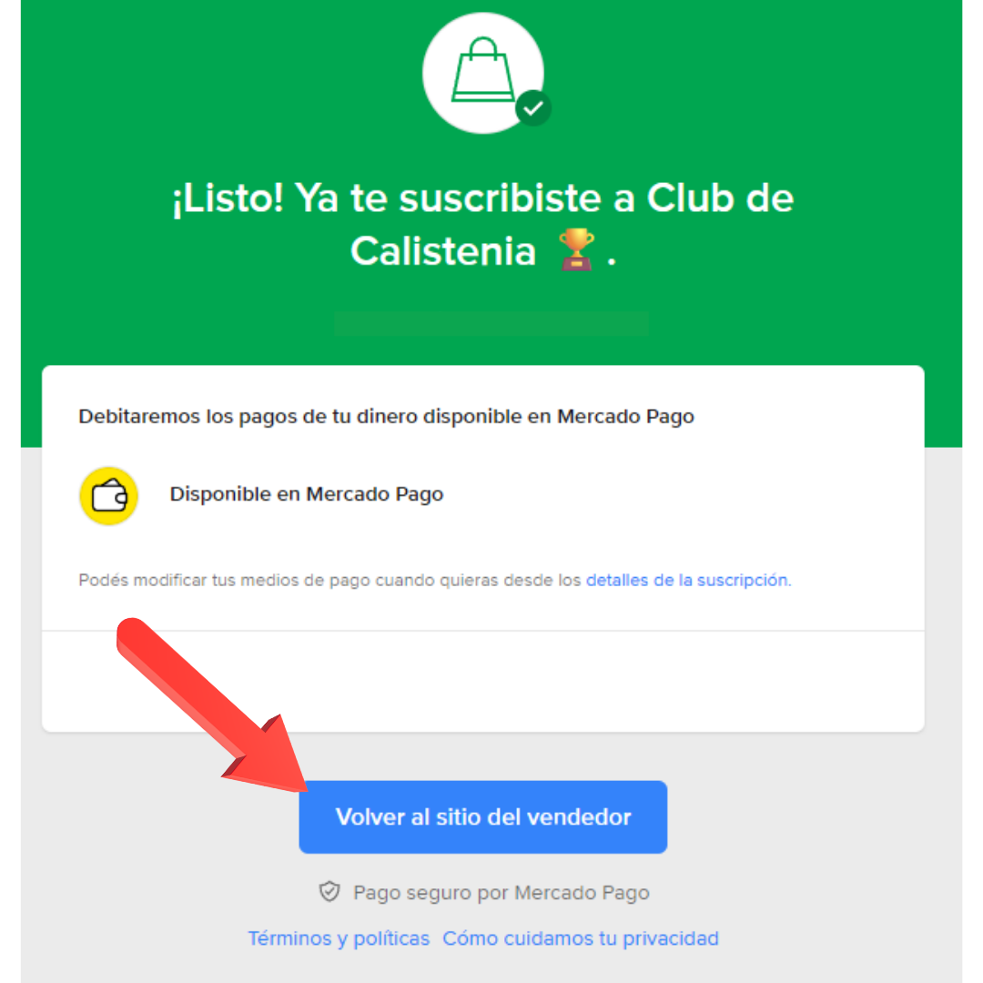 En el Ășltimo paso, tocĂĄ "Volver al sitio del vendedor" para finalizar tu inscripciĂłn correctamente.